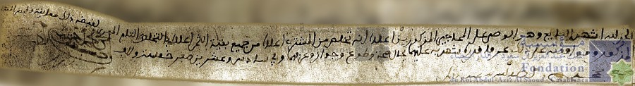 الحمد لله اشهد البائع وهو الوصي على المحاجير المذكورين اعلاه أنه تخلص من المشتري اعلاه من جميع بقية الثمن اعلاه بالتخلص التام الجبري لقبضه ذلك معاينة ومحضر المشتري المذكور وموافقة على ذلك عرفا قدره شهد به عليهما بحال صحة وطوع جواز وعرفهما وفي سادس وعشرين صفر خمسة والف |
