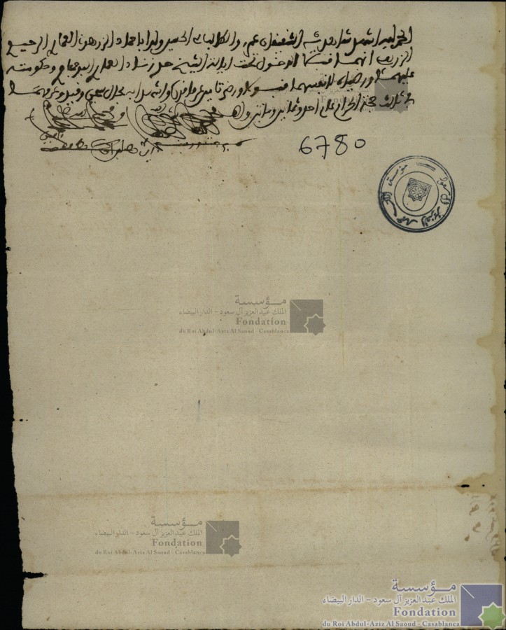 الحمد لله أشهد شاهديه الشقيقان عمر بن الطالب سي الحسن ولد أباحماد الزرهوني العماري الرحيم الزريعي أنهما قبلا الدخول تحت إيالة الشيخ حد زناد العماري البوجباري وحكومته عليهما ورضياه لأنفسه قبولا ورضي تامين عارفوه وأشهد به الحال سجن وقيد وعرفهما في ثالث حجة الحرام عام أحد وثمانين وألف |