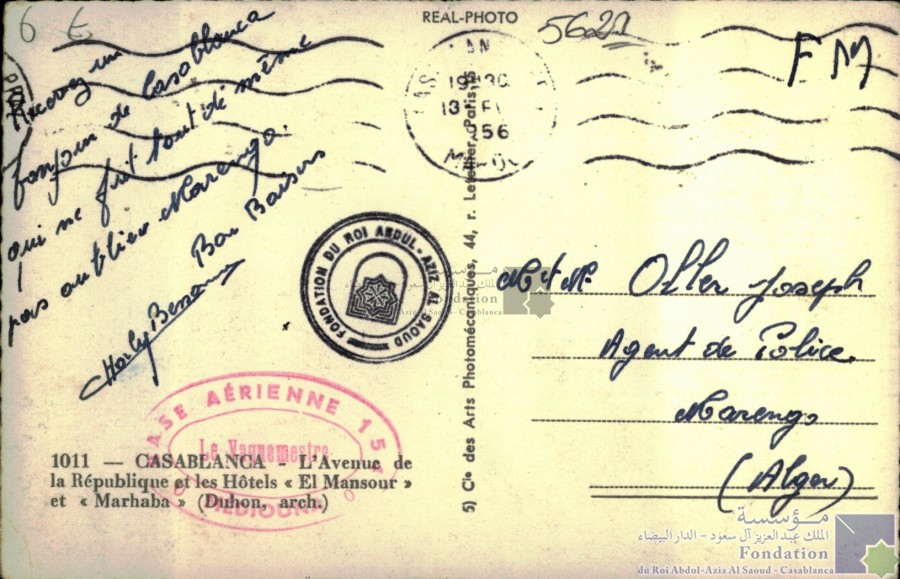 Objet Casablanca - l'Avenue de la République et les hôtels "El Mansour" et "Marhaba" (Duhon, arch.) الموضوع
