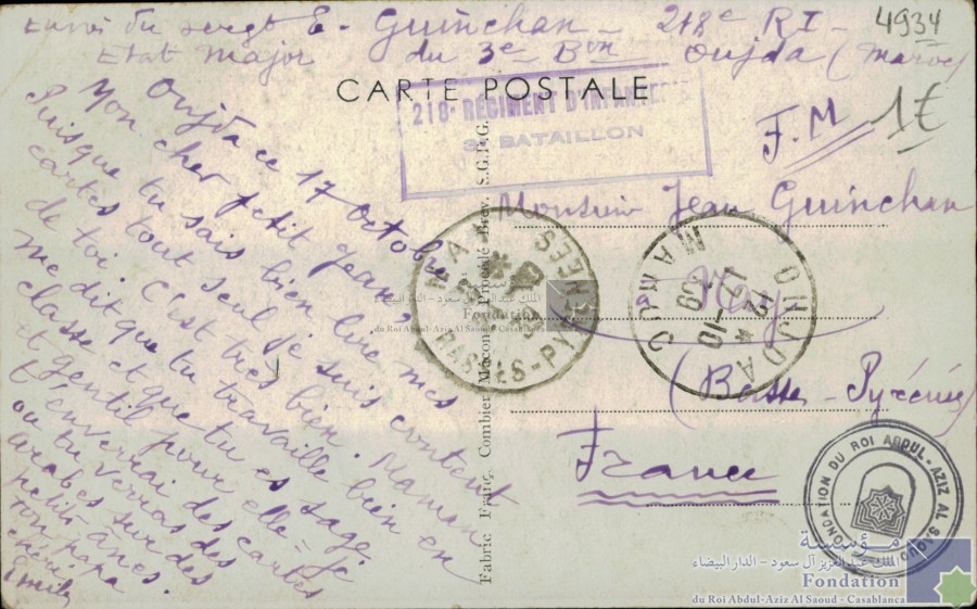 | Objet | Oudjda - Place Clemenceau | الموضوع |