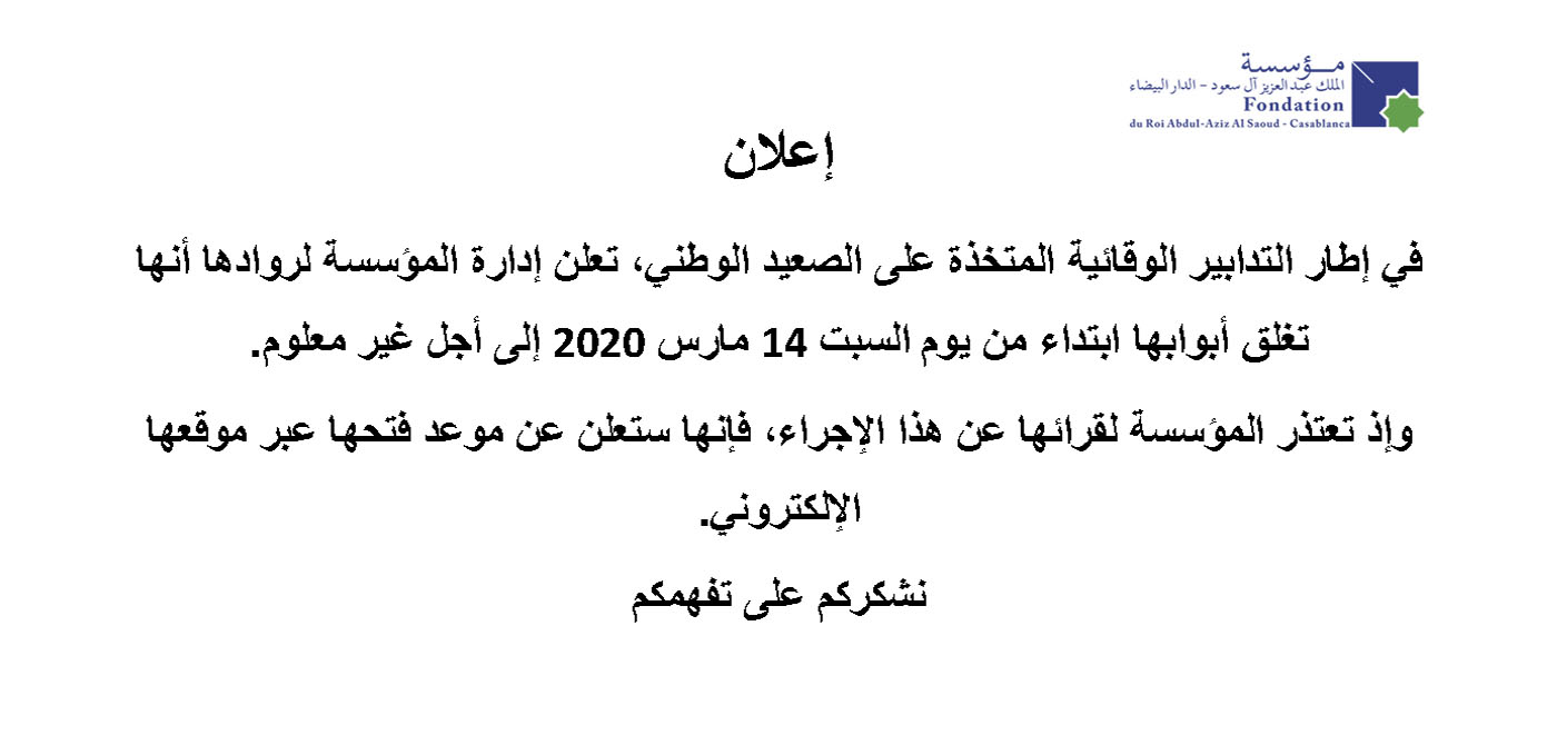 La Fondation du Roi Abdul-Aziz Al Saoud-Casablanca annonce que la table ronde « Ecole des Lumières », qui était prévue... |