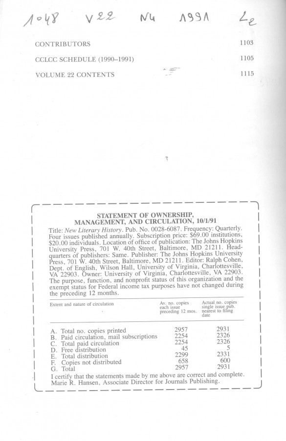 New literary history ed. Ralph Cohen a journal of theory and interpretation