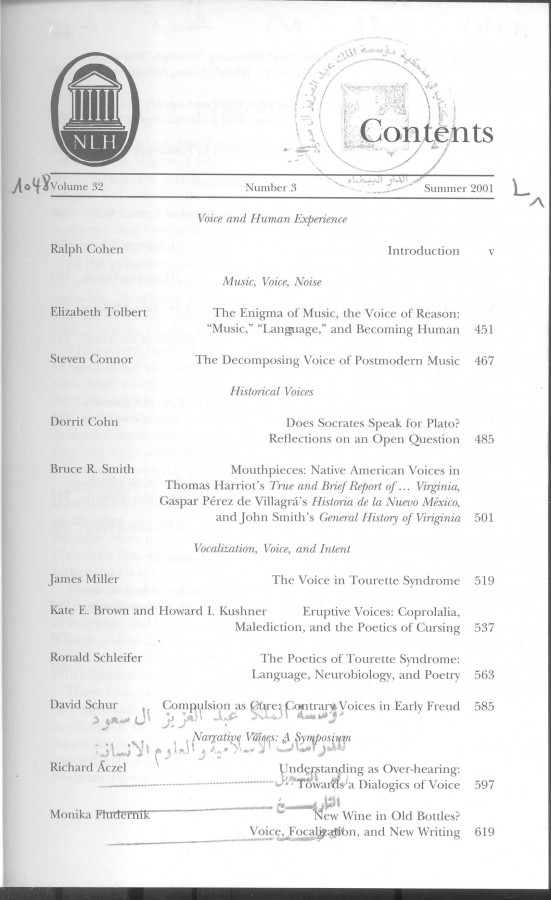 New literary history ed. Ralph Cohen a journal of theory and interpretation