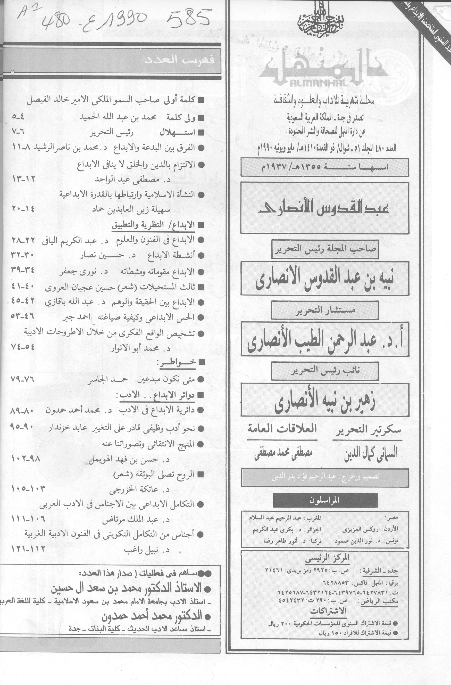 المنهل أسسها عبد القدوس الأنصاري مجلة للآداب والعلوم والثقافة