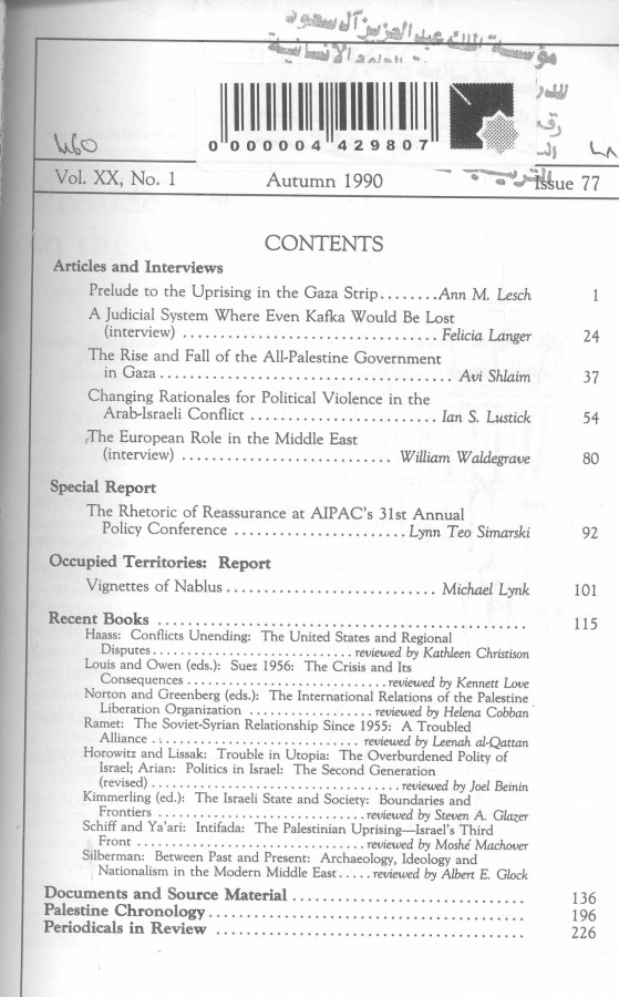 Journal of Palestine studies ed. Institute for Palestine Studies a quarterly on Palestinian affairs and the Arab-Israeli conflict