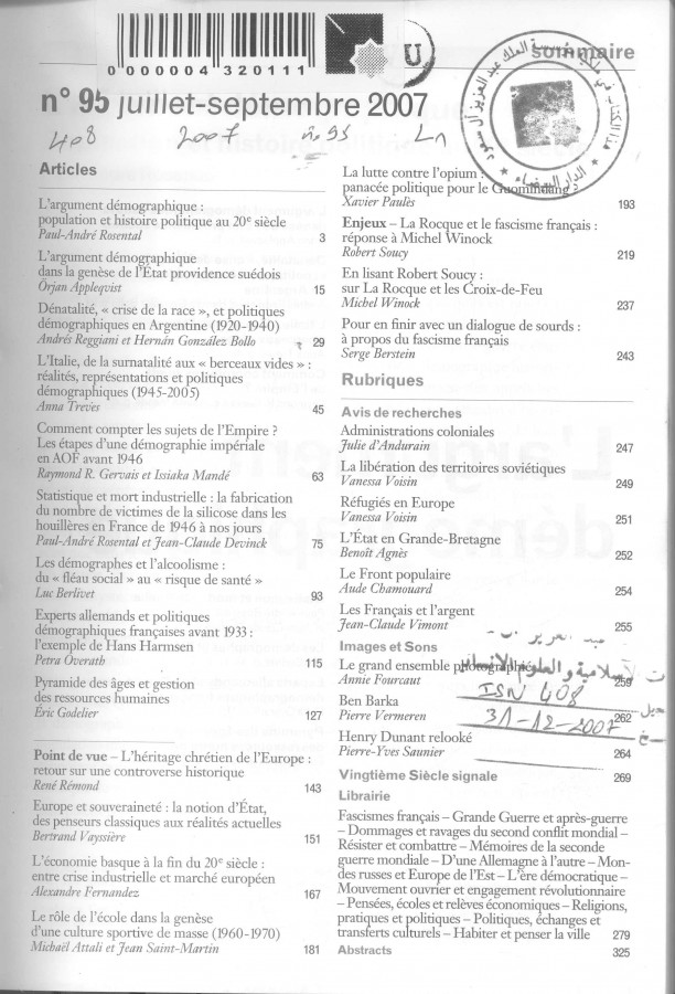 Vingtième siècle dir. Jean-Pierre Rioux revue d'histoire
