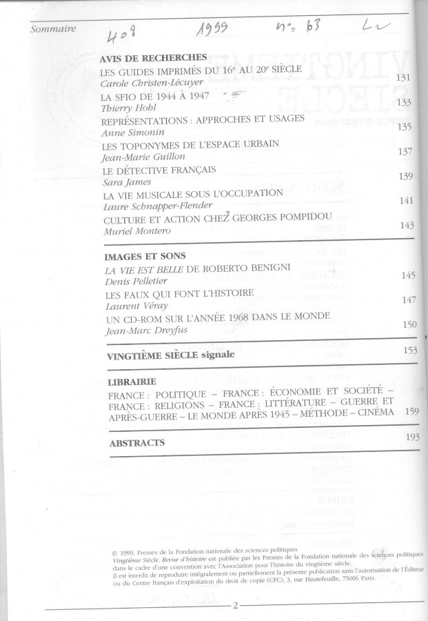 Vingtième siècle dir. Jean-Pierre Rioux revue d'histoire