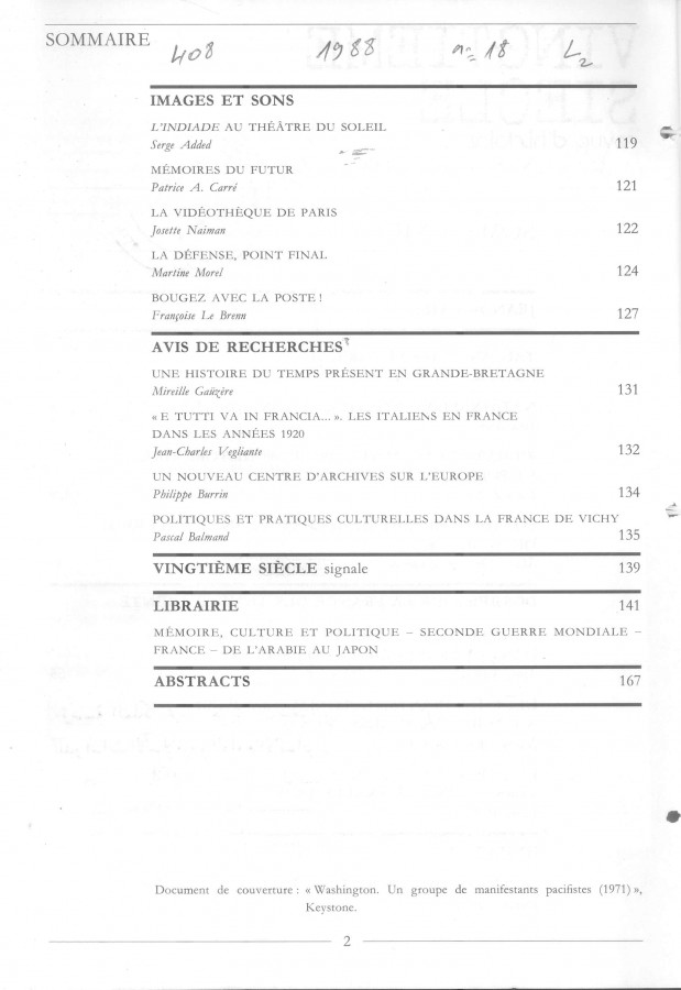 Vingtième siècle dir. Jean-Pierre Rioux revue d'histoire
