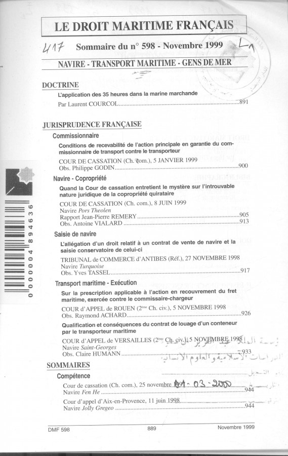 Le Droit maritime français éd. Société du journal de la marine marchande