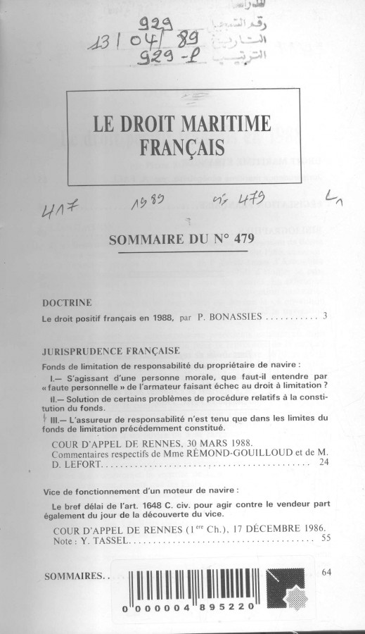 Le Droit maritime français éd. Société du journal de la marine marchande