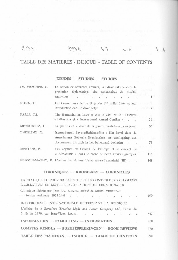 Revue belge de droit international éd. Centre de droit international et de stratégie appliquée au droit international de l'Université libre de Bruxelles
