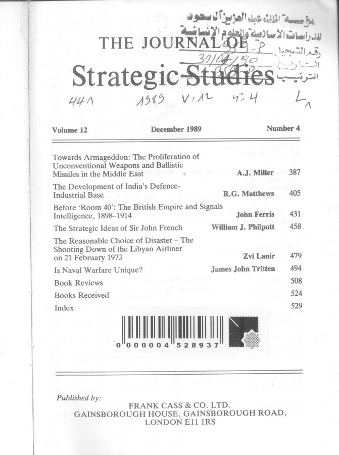 The Journal of strategic studies ed. Amos Perlmutter, John Gooch