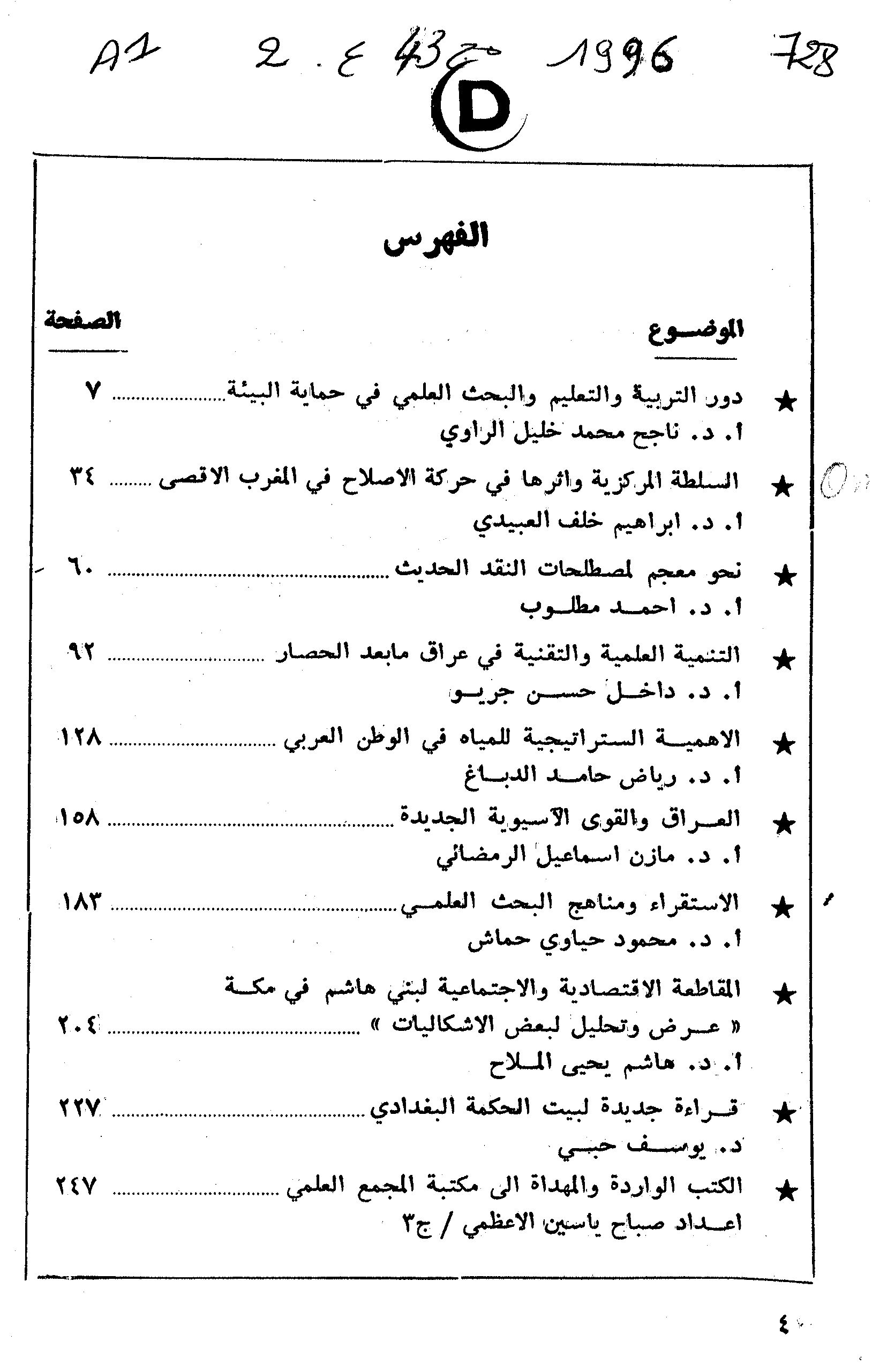 مجلة المجمع العلمي الأكاديمية العراقية Journal of the Academy of sciences